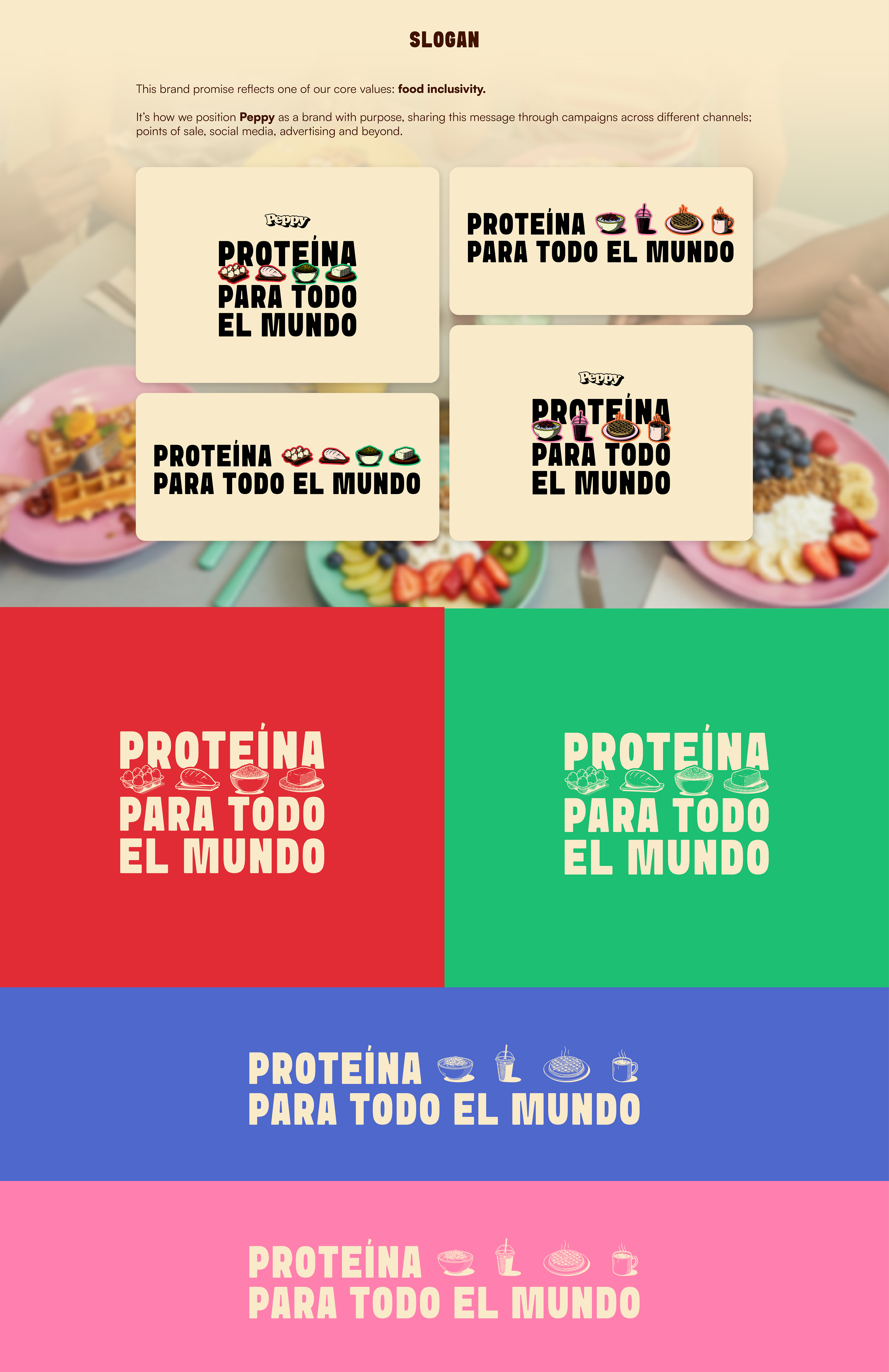 El concepto de la marca se basa en la energía positiva transformada en alimentos prácticos, deliciosos y altos en proteína, representando el equilibrio entre lo saludable y lo placentero, la disciplina y el disfrute. A través de recetas versátiles como bowls, batidos, waffles e iced teas, Peppy acompaña distintos estilos de vida, promoviendo una relación más consciente y alegre con la comida.