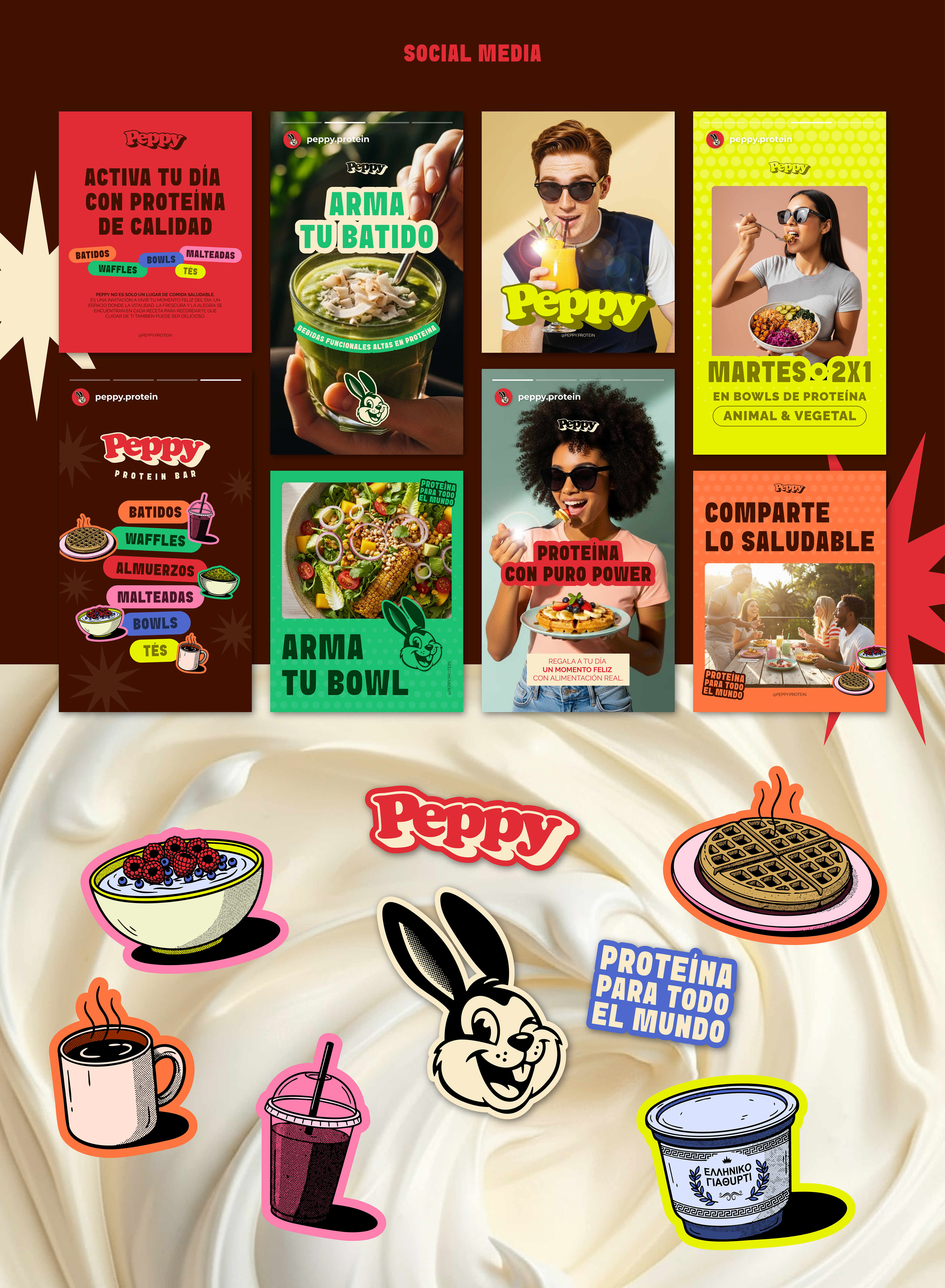 The brand concept is built around positive energy transformed into practical, delicious, high-protein food, representing the balance between health and pleasure, discipline and enjoyment. Through versatile options such as bowls, smoothies, waffles, and iced teas, Peppy supports different lifestyles while encouraging a more conscious and joyful relationship with food.